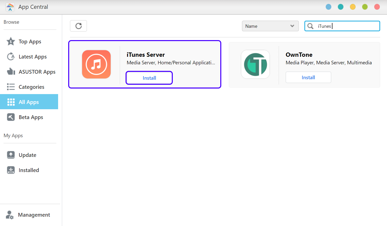 • App Central에서 iTunes Server을 설치합니다.