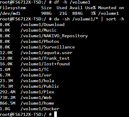 Este comando te mostrará el tamaño de los directorios y archivos dentro del volumen, ordenados de menor a mayor tamaño, lo que te permitirá identificar qué está consumiendo más espacio.