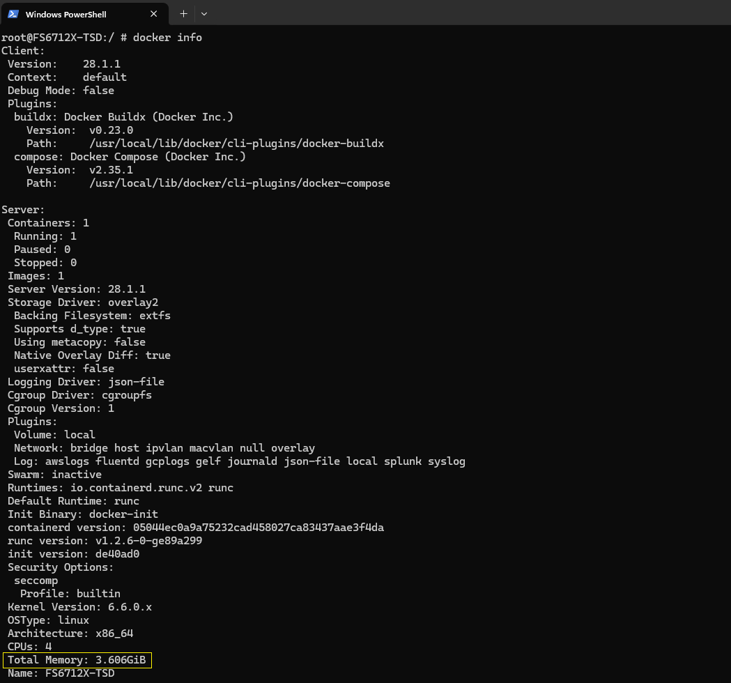 Esto te mostrará los límites de memoria que Docker está aplicando y te ayudará a identificar por qué la verificación de la app falla.
