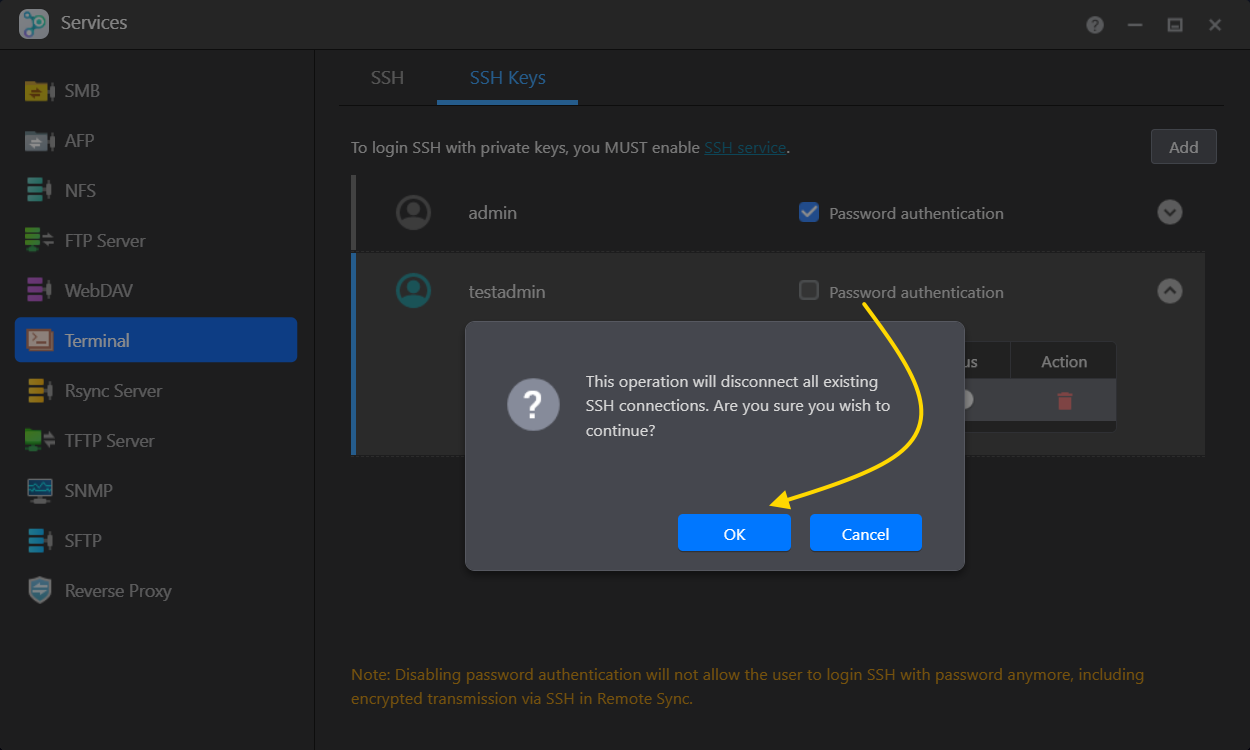 3. Utilizzare una chiave SSH per accedere a un ASUSTOR NAS