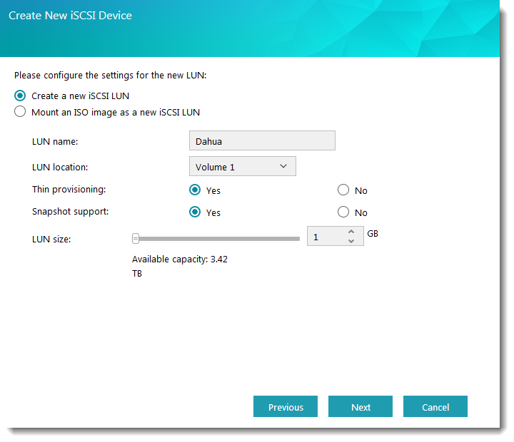3. Aggiunta di una LUN iSCSI a un Dahua XVR