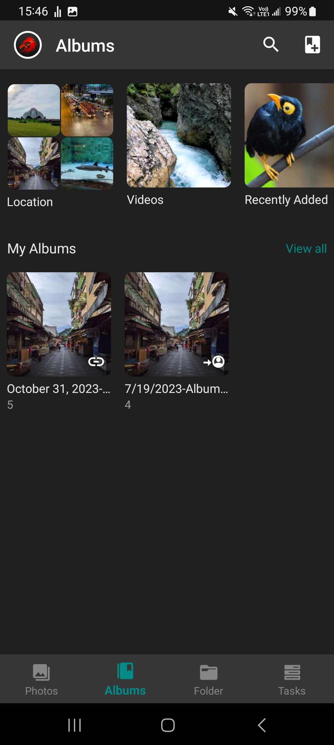 Albums can also be created in the albums page.