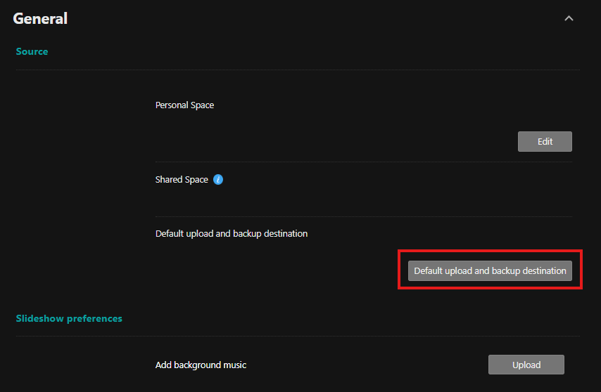 Set default upload and backup destination
