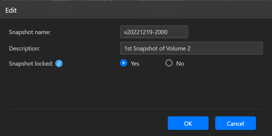 Note: ADM will stop creating snapshots if a new snapshot exceeds the maximum amount of snapshots while all previous snapshots are locked. Users need to manually remove the locked snapshots and then can create snapshots again.