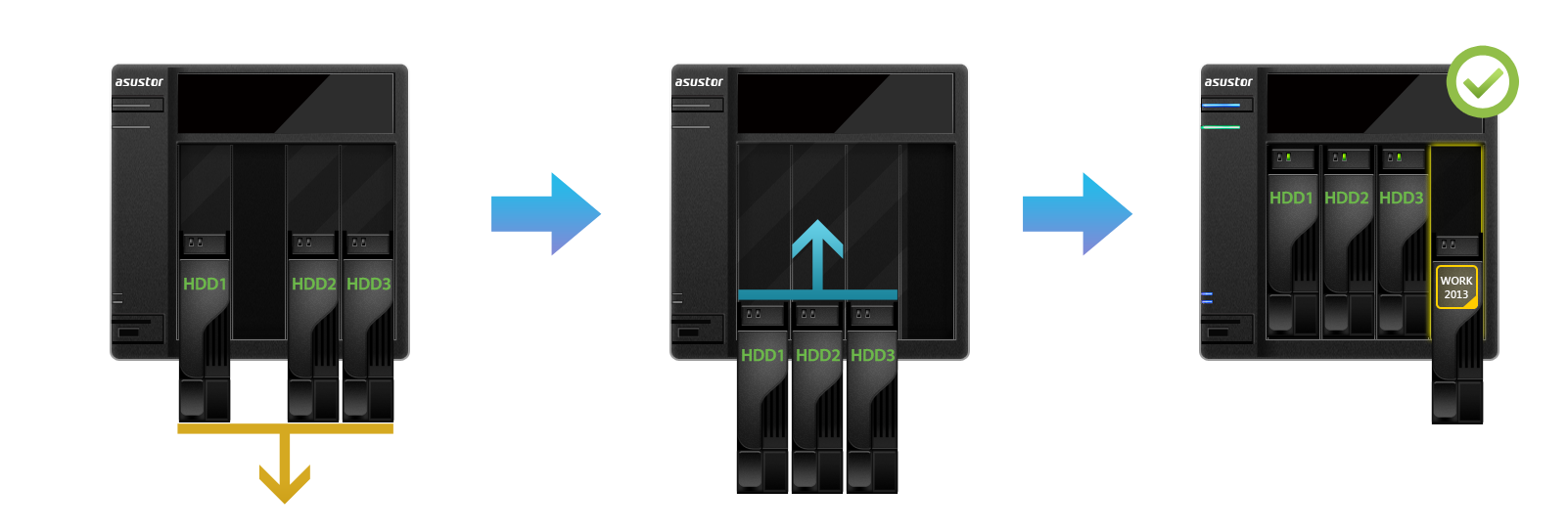 Note: If MyArchive drive bays are still being occupied by hard drives, please refer to section 2.1 When the NAS has other empty drive bays available for further instructions.