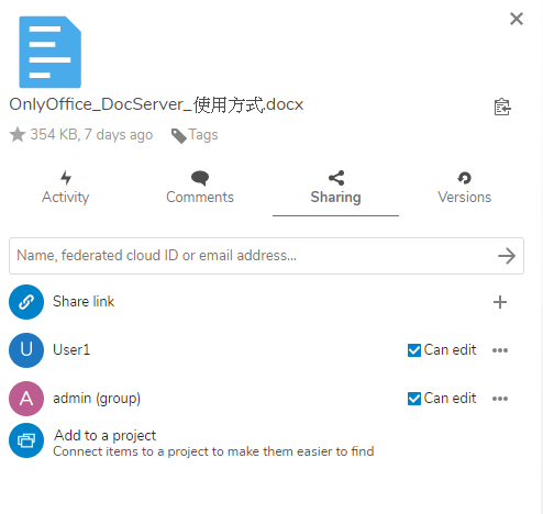 Other users should now be able to log in NextCloud from another PC or web browser and the shared files or folders can be selected for collaborative editing.