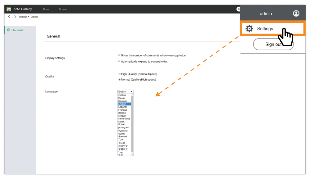 Photo Gallery provides preferences settings, allowing users to configure browsing preferences according to different devices and network environments. For example, when using Photo Gallery under more optimal network conditions where the loading speed is no issue, users may prioritize photo quality and choose to browse with higher resolution thumbnails. If network conditions are suboptimal or when using a smartphone and loading time is of priority, users can choose the lower the quality of the thumbnails for a smoother browsing experience. Furthermore, each user can customize the interface language and turn off commenting according to their preferences.