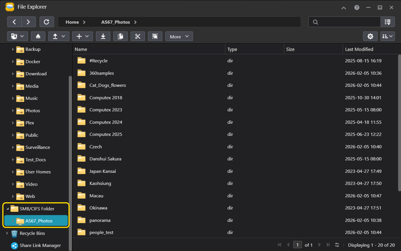 • Go to [File Explorer] [SMB/CIFS Folder] to see that you can access the files in the folder.