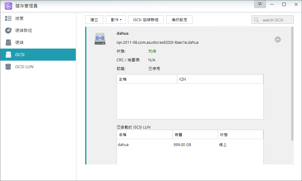 2.    於ASUSTOR NAS建立 iSCSI LUN