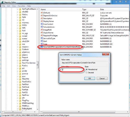 新增一個 AssumeUDPEncapsulationContextOnSendRule 值為2 並且按下 OK
